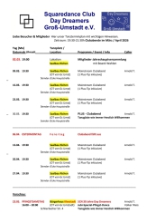 Die Clubabende beginnen generell um 19:30 Uhr und enden um 21:30 Uhr.