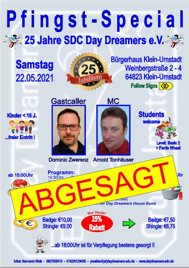 Alle Day Dreamers bedanken sich recht herzlich bei den Tanzgästen aus anderen Clubs, die uns beim gestrigen Pfingst-Special besuchten.